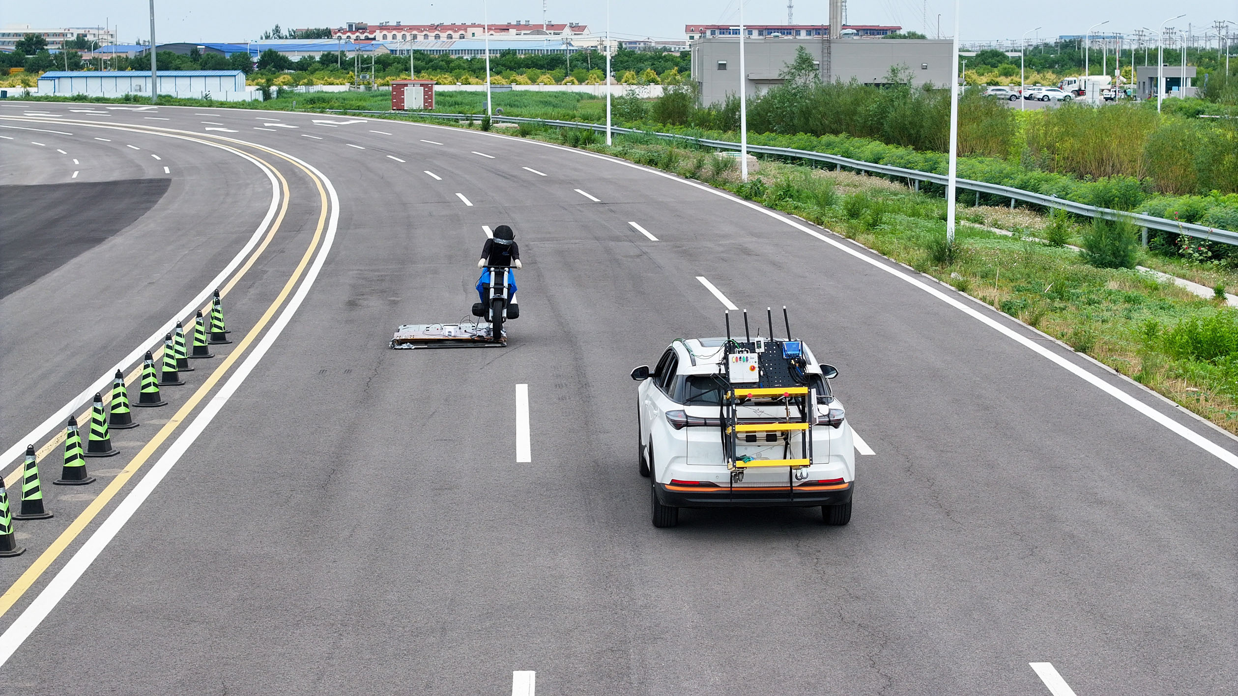 图为测试车辆在天津(西青)国家级车联网先导区封闭测试场内进行自动驾驶主动安全功能测试ღღ◈◈。新华社记者孙凡越摄